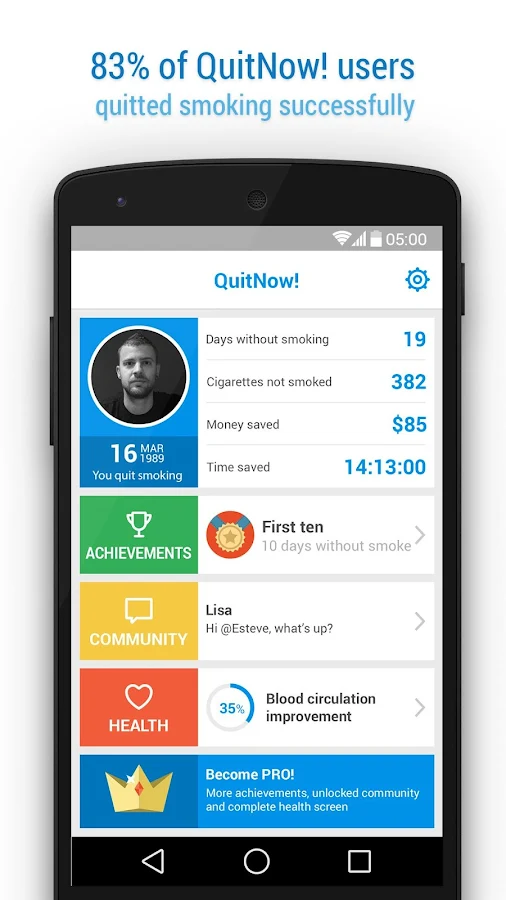 Se você gostou do QuitNow!… seja PRO por menos que o preço de um maço de cigarros!